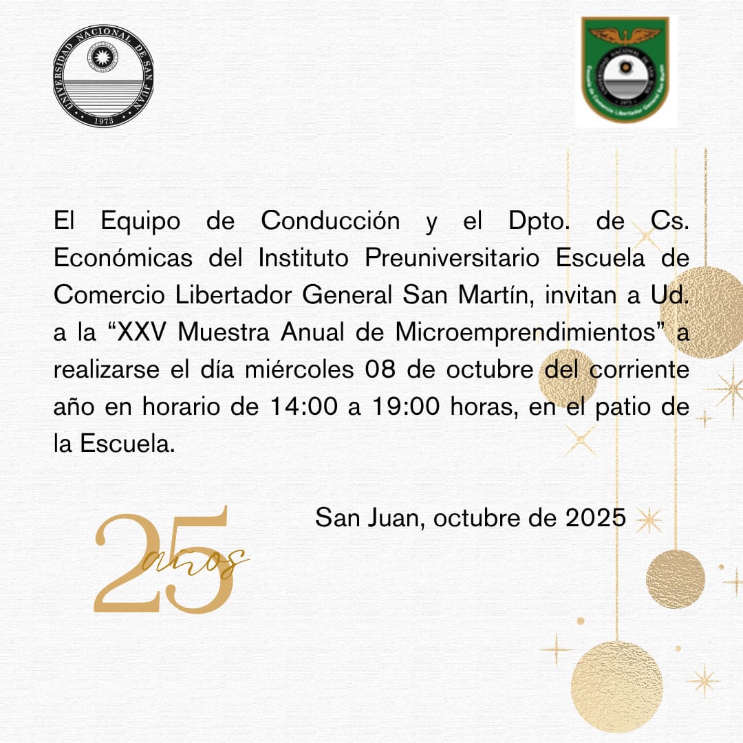La XXV Muestra Anual de Microemprendimientos del Instituto Preuniversitario Escuela de Comercio Libertador General San Martín es una instancia académica y formativa que busca exhibir y valorar los proyectos productivos y de innovación desarrollados por los estudiantes.