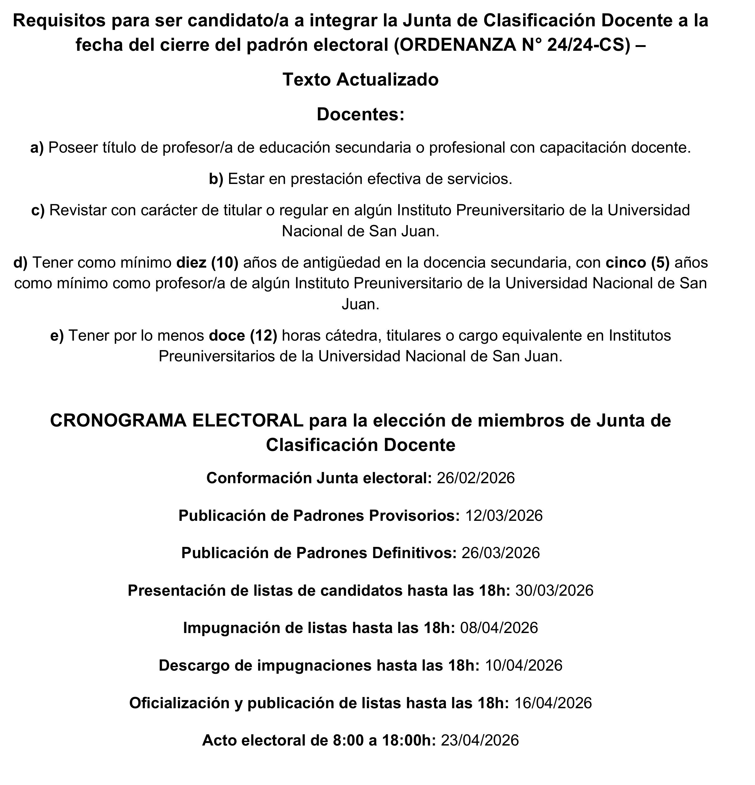 Condiciones de postulación según la Ordenanza N° 24/24-CS y las fechas clave de proceso electoral